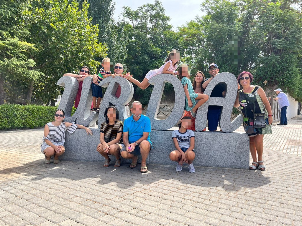 Despues de visitar la iglesia, bajamos hasta un parque donde los niños se divirtieron en los columpios y nosotros nos tomamos un refresco en un bar cercano que tenía una terraza de lo más acogedora; después de hacernos fotos e inmortalizar nuestra estancia en Urda, nos dirigimos hacia la Plaza del Ayuntamiento, muy coqueta con su fuente central, y de allí a La casa rural, para comer de nuevo en familia y preparar nuestra marcha.