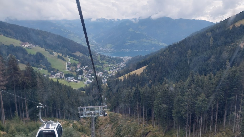 El día siguiente, domingo, madrugamos para subir al monte Schmitten, a 2.000 metros de altitud, y lo hicimos en el moderno teleférico diseñado por Porsche, Trassxpress Schmittenhohebahn, que además del teleférico, incluye ascensor y red de remontes. Si se está en forma también se puede acceder a pie por senderos bien señalizados.