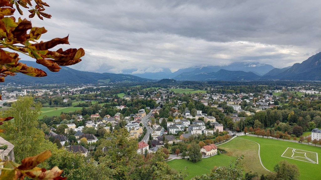 Llegamos a Salzburgo sobre las 11 y una vez allí, nos dirigimos al Hotel Stein donde teníamos reservadas habitaciones, para dejar las maletas y empezar la visita de una ciudad que nos recibía con esta maravillosa vista.