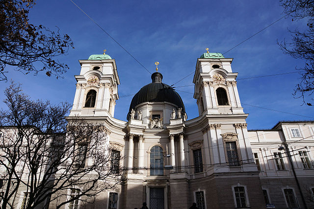 Más tarde el Príncipe-Arzobispo Wolf Dietrich von Raitenau, impuso la moderna arquitectura barroca italiana, estilo que se implantó en la nueva iglesia y que predomina en la majestuosa nave, en el coro, en las ornamentadas cúpulas, en los cinco órganos que posee y en la fastuosa decoración interior.