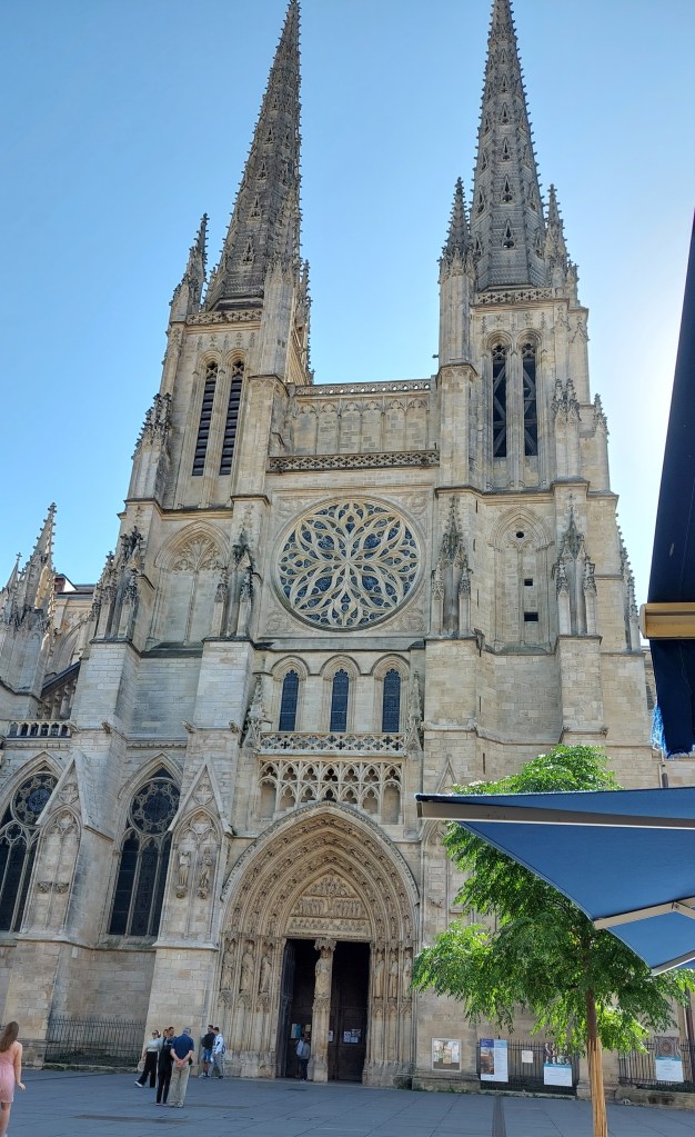 A su lado, la Catedral de San Andrés, -que marca el límite entre el viejo Burdeos y la ciudad moderna-, es uno de los principales monumentos de estilo gótico, que desde 1998 forma parte del Patrimonio de la Humanidad como parte del Camino de Santiago francés. Aunque el origen de la Catedral es románico, finales del siglo XI, no quedan de aquella construcción más que los muros interiores de la nave principal.