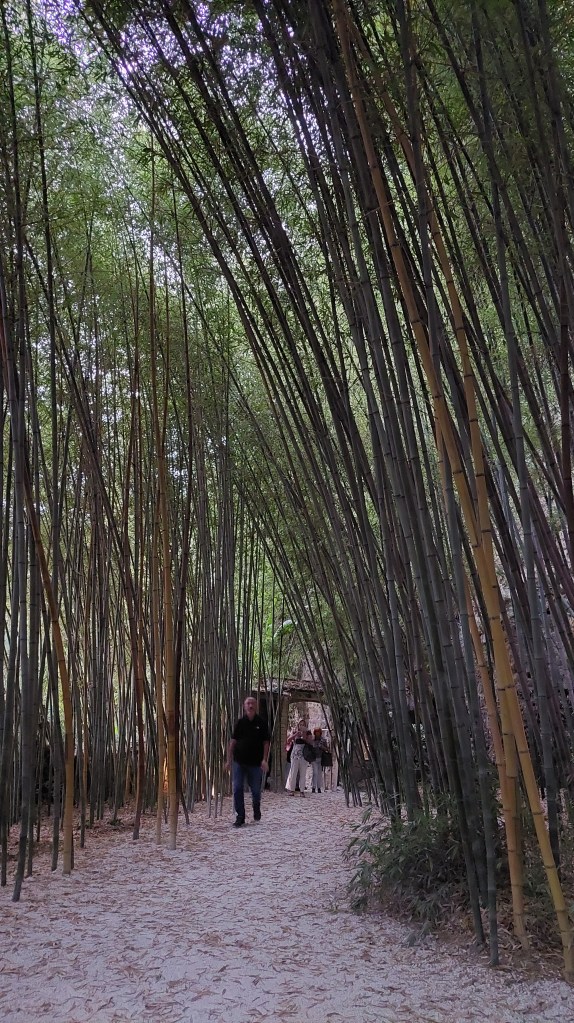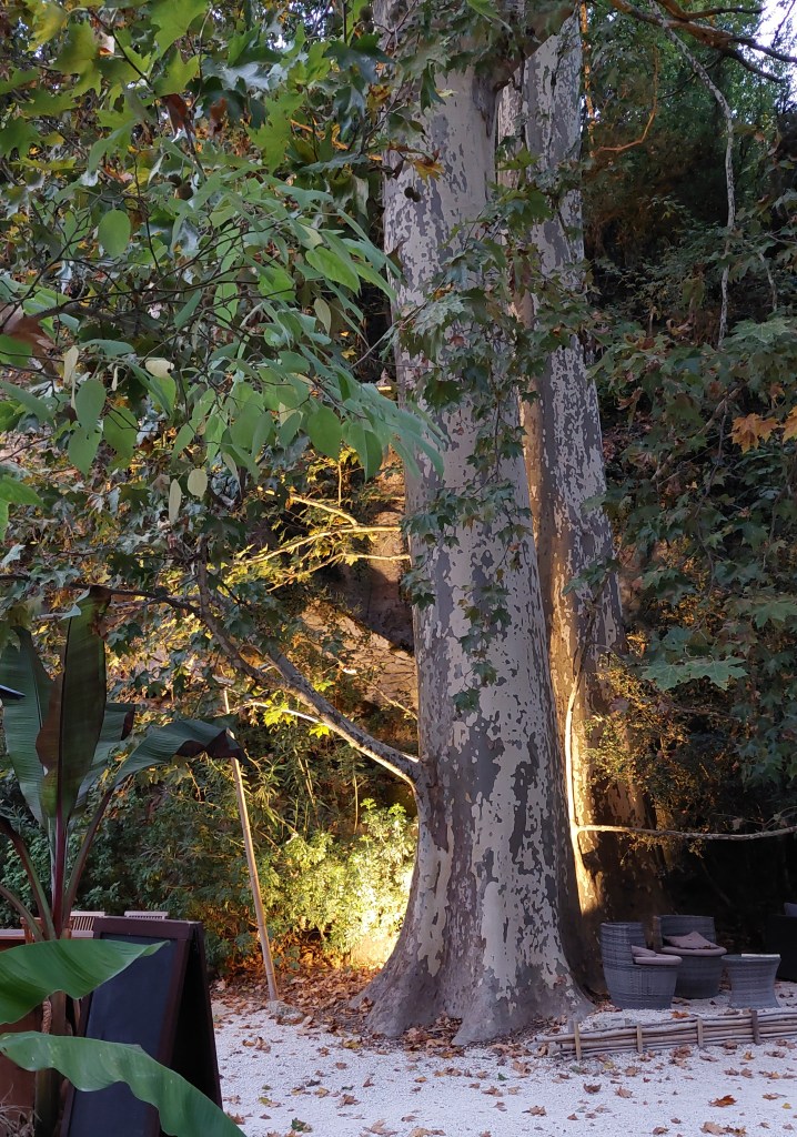 Decidimos buscar un sitio para cenar, que encontramos allí mismo, un restaurante fantástico oculto entre una vegetación de palmeras, plataneros, higueras, cactus y bambúes que crecen libremente en este entorno natural; estábamos solos en el jardín, envueltos por una exótica naturaleza cuya iluminación, con velitas, creaba un ambiente de intimidad y calidez; tras la estupenda cena, volvimos al hotel en Vitrac.