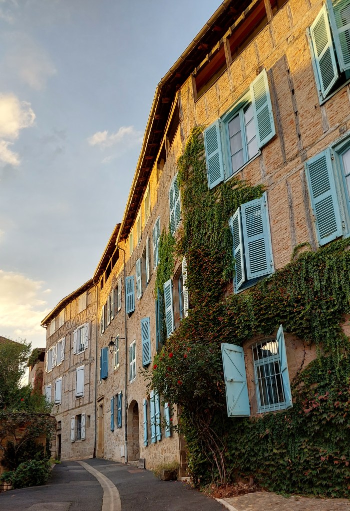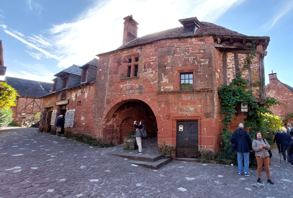 El pueblo, considerado uno de los más bellos de Francia, nos sorprendió por el singular encanto de sus casas de arcilla rojiza y sus tejados puntiagudos de piedra negra, que nos recordaban los cuentos de nuestra infancia; las calles están muy bien cuidadas y decoradas con parras verdes que contrastan con el rojo que inunda el pueblo y le dan una belleza especial; la presencia de sus numerosas torres fortificadas le han valido el sobrenombre de «Ciudad de las 25 torres», confiriéndole un carácter mágico y señorial.