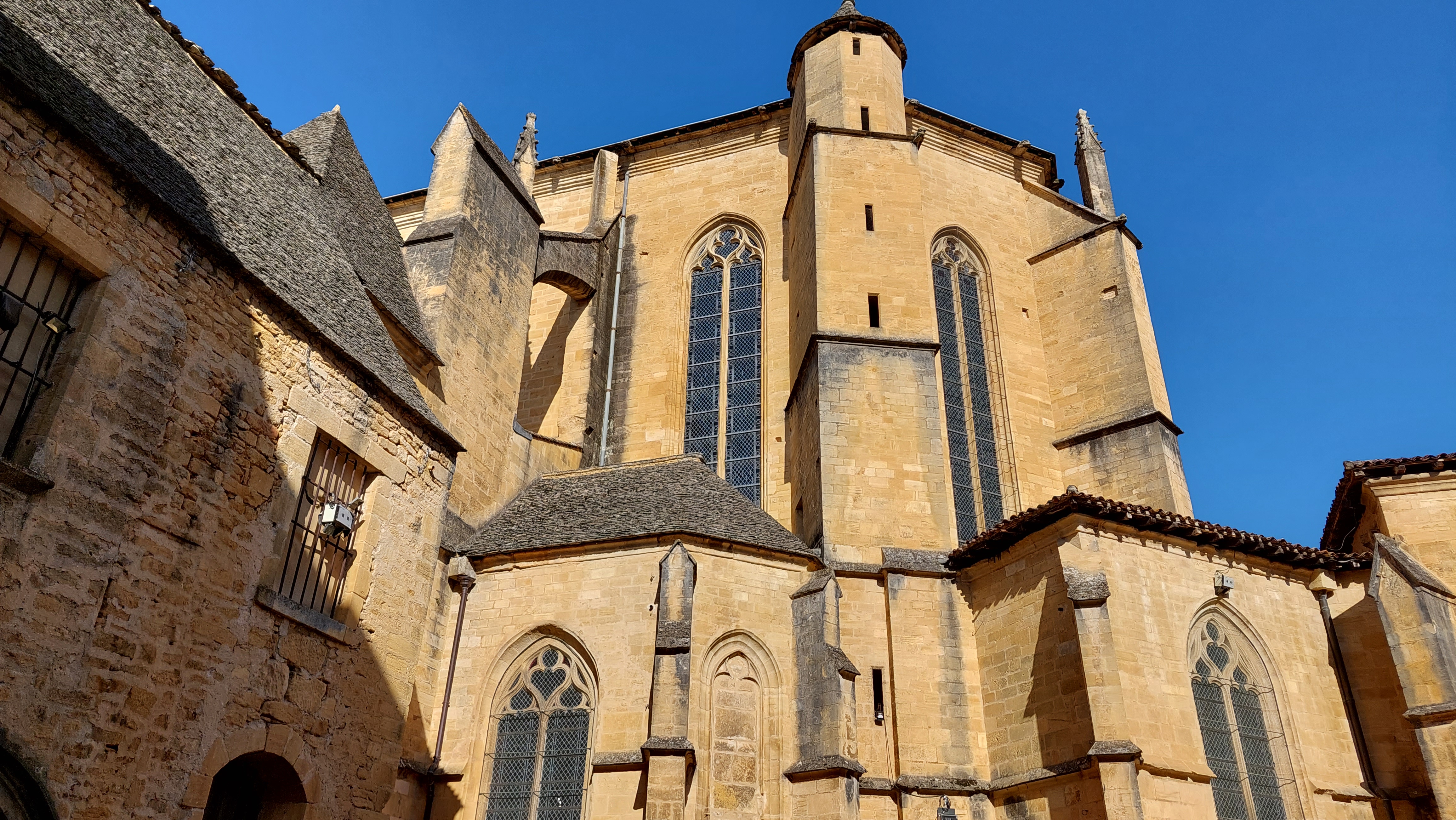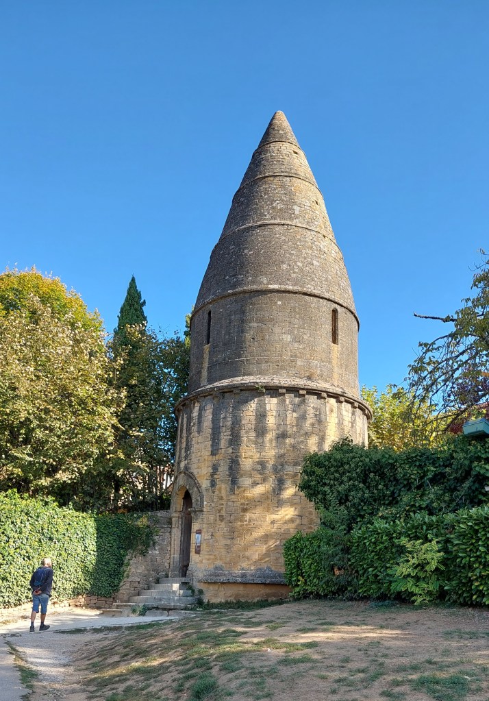 Detrás de la catedral de Sarlat se alza la torre conocida como Lanterne des Morts, curiosa construcción circular también conocida como torre de San Bernardo; es el edificio más antiguo de Sarlat, del siglo XII, y sobre el uso que pudo tener, existen muchas teorías; unos dice que fue una especie de faro, otros una capilla y otros un mausoleo. Como no hay nada probado, dejamos a los lectores que dejen volar su imaginación.